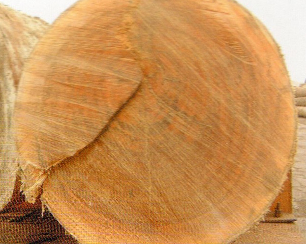 心邊材區(qū)別明顯。心材淺褐色或金黃褐色;邊材灰白色至灰黃色,寬5~8cm,具黑色同心圓狀條紋。生長輪不明顯。