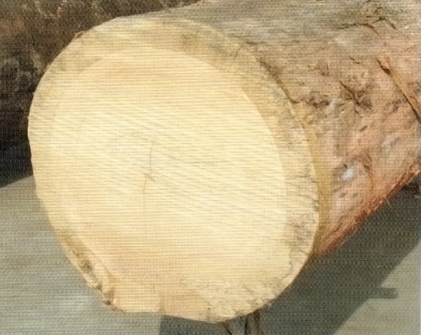 心邊材新鮮時區(qū)別不明顯,由于邊材易藍變,久則區(qū)別明顯。心材淺黃褐色至稻草黃褐色。邊材淺灰褐色,寬3~5 cm;常見白色樹膠圈。生長輪不明顯。